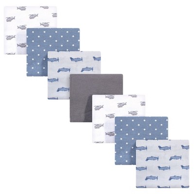 Hudson Baby Infant Boys Cotton Flannel Burp Cloths and Receiving Blankets, 8-Piece, Paper Airplane, One Size