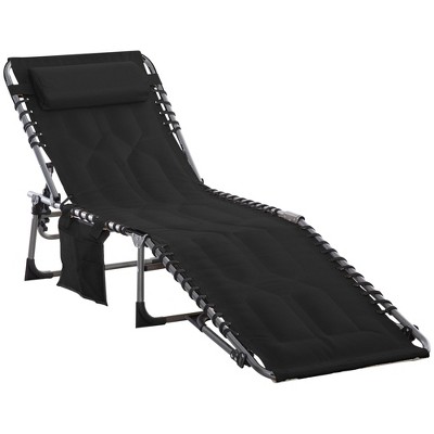MOEPISY Padded Folding Chaise Lounge Chair, Outdoor 6-Level Reclining Camping Tanning Chair with Headrest