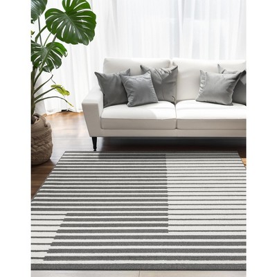 black and grey square rug