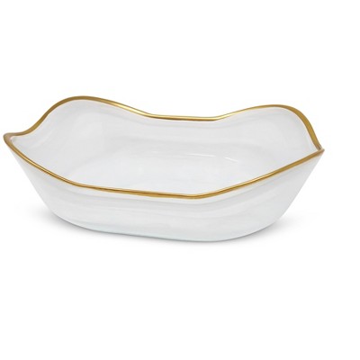 Classic Touch White Alabaster Bowl with Gold Rim