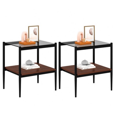 FONTOI Rectangle Coffee Table Set of 2 with Storage layer, Side Table for Living Room Bedroom Office, Black, 19.1"*15.35"*21.14"