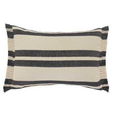HomeRoots 16" X 24" Gray And White 100% Cotton Striped Zippered Pillow