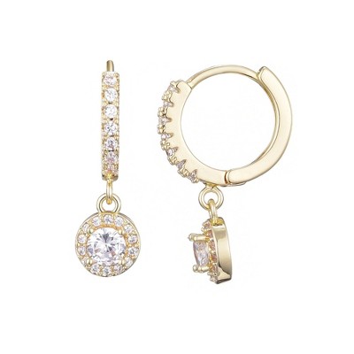 Adornia 14k Gold Plated CZ Halo Drop Huggie Hoop Earrings