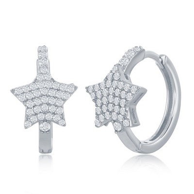 Bella Silver Sterling Silver Mircro Pave CZ Star Huggie Hoop Earrings - Silver