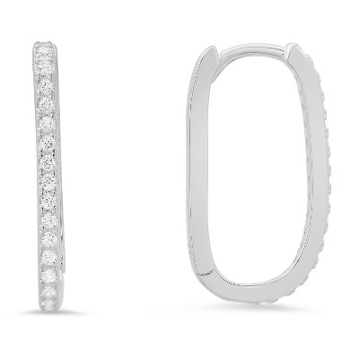 Sterling Silver 20mm U Shaped CZ Hoop Earrings
