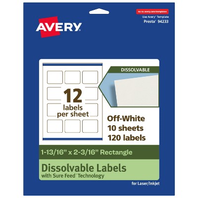 Avery Dissolvable Labels, 1-13/16" x 2-3/16" Rectangle