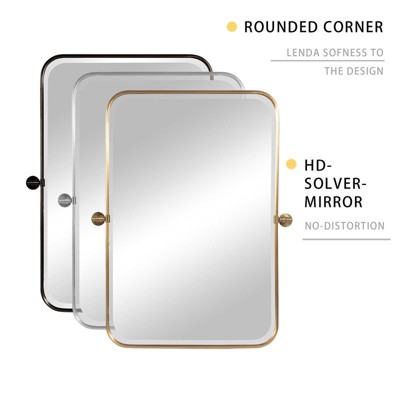 PexFix 36" x 24" Iron Rectangle Gold Pivot Wall Mirror Tilting Bathroom Vanity Mirror Metal Framed Adjustable Two-way mirror for Bedroom Living Room