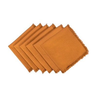 Design Imports Heavyweight Fringe Napkin Set 6 Piece, Pumpkin Spice, 20X20"