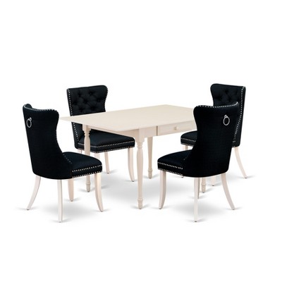 East West Furniture, 5 Piece Modern Dining Table Set Includes a Rectangle Kitchen Table with Dropleaf and 4 Padded Chairs, linen white