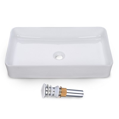 Aquaterior 20"x 14"x6" Rectangle Porcelain Vessel Sink w/ Overflow and Pop Up Drain Bathroom