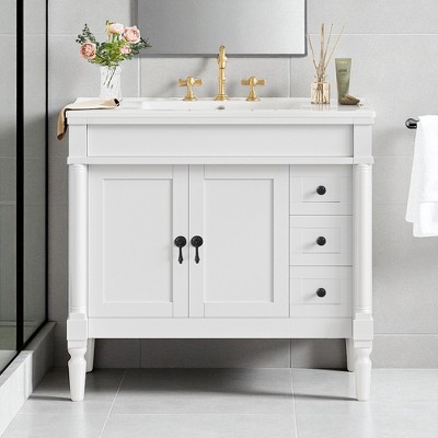 - bathroom vanity with biscuit sink