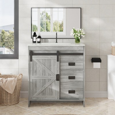 - bathroom vanity with biscuit sink