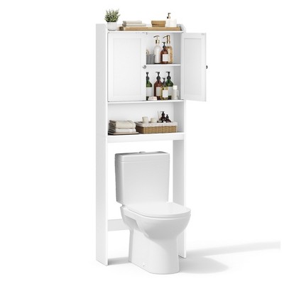 Tier Over Toilet Storage Cabinet with Magnetic Doors, Freestanding Above Toilet Shelf, Rustic Brown, Heavy Duty, Adjustable Feet