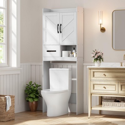 Over Toilet Storage Cabinet Above Toilet Storage Shelf with Glass Doors White Bathroom Organizer Behind Toilet Storage Unit