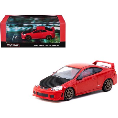 Honda Integra Type R DC5 Custom RHD Red with Carbon Hood "Road64" Series 1/64 Diecast Model Car by Tarmac Works
