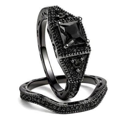 Cordelia Bridal Set Solitaire 3pc Black Rose Cz Engagement Ginger Lyne Collection