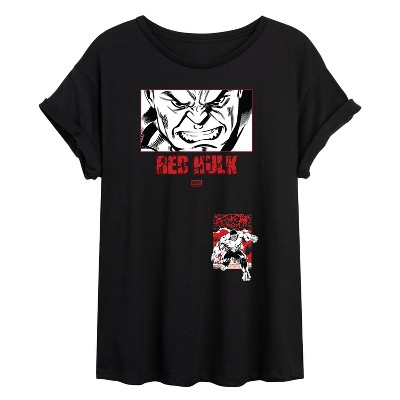 Women's - Marvel - Red Hulk Close Up Oversized Graphic T-Shirt