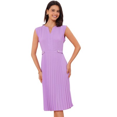 Allegra K Women's Sleeveless Casual V Neck Button Pleated Midi Dress
