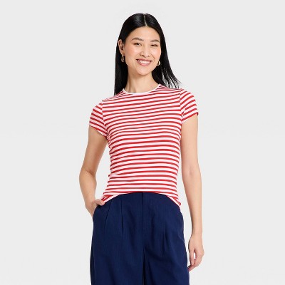 Women's Modern Ribbed T-Shirt - A New Day™ Red/White Striped