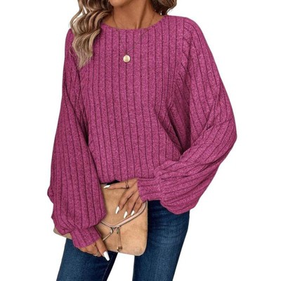 Coolmee Women's Batwing Long Sleeve Shirts Fashion Crewneck Tops Dressy Casual Loose Fit Lightweight Sweaters Rose Red S