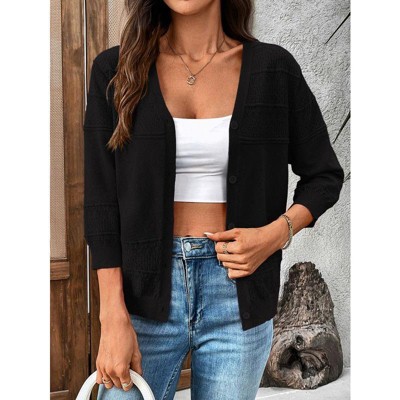 Coolmee Women's 3/4 Sleeve Knit Cardigan Sweater V-Neck Basic Classic Casual Button Down Lightweight Top