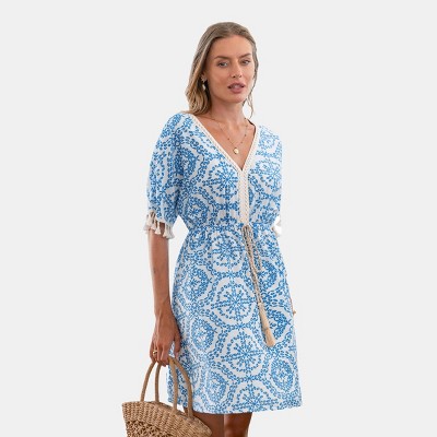 Cupshe Women's Breezy Blue Medallion Beach Dress-L-Blue
