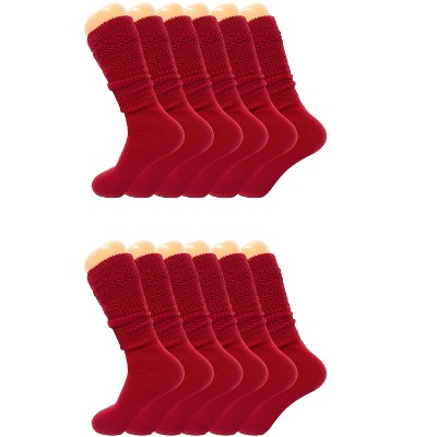 Women’s Slouch Scrunch Socks 12 Pairs Cotton Knee-High Shoe Size 5-10
