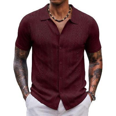 - mens red button shirt