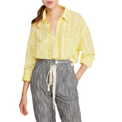 Free People Womens Loveland Button Up Shirt, yellow, Small