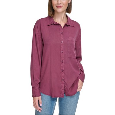 Calvin Klein Womens Solid Boyfriend Button Up Shirt
