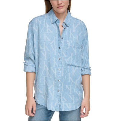 Calvin Klein Womens Boyfriend Fit Button Up Shirt