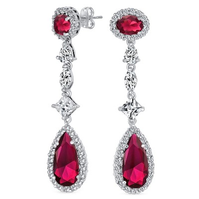 Bling Jewelry Cubic Zirconia Halo Long CZ Solitaire Teardrop Statement Chandelier Earrings