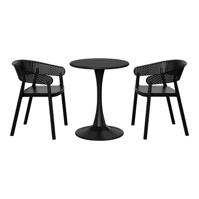 WestinTrends Playa 3-Piece Round Metal Bistro Dining Table Set And Stackable Resin Patio Dining Side Chairs