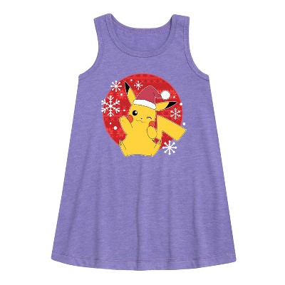 Girls' - Pokémon - Pikachu Santa Hat Graphic Sleeveless Aline Dress