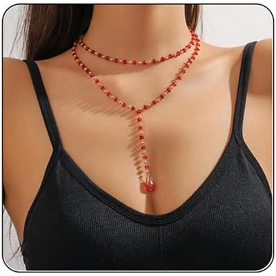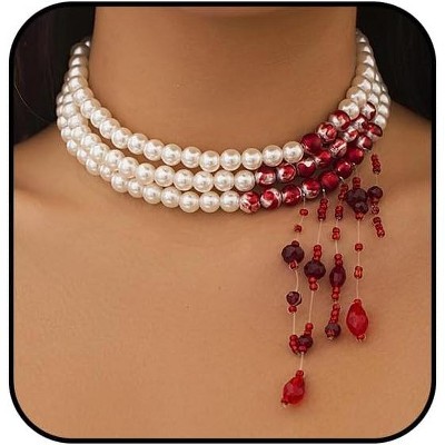 Gothic Blood Drop Fringe Choker With Crystal & Pearl Beads For Vampire Halloween Punk Jewelry