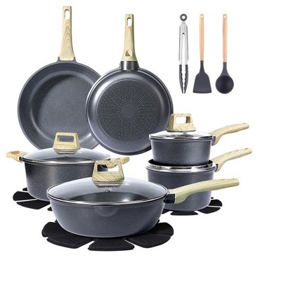 Aoibox 22-Piece Ceramic Nonstick Cookware Set with Glass Lids & Utensils, PFOS/PFOA-Free, Induction Ready