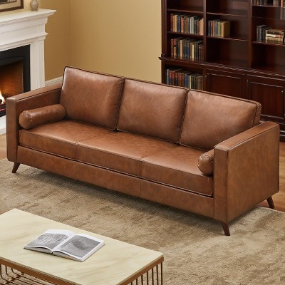 - brown faux leather sofa