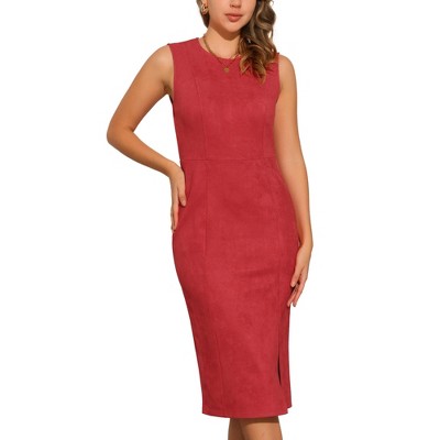 INSPIRE CHIC Women's Faux Suede Sleeveless Crewneck Split Hem Work Sheath Dress