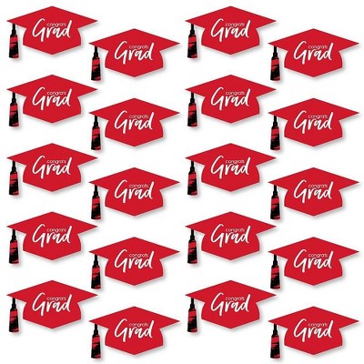 Big Dot of Happiness Red Graduation Hat Decorations - DIY Large Party Essentials - 20 Count