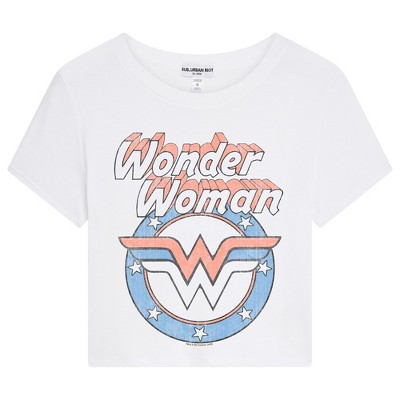 Women's Wonder Woman Movie Lasso Logo Dylan Short Sleeve Crop Top
