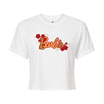 Women's - Barbie - Logo Red Floral Cropped Graphic T-Shirt