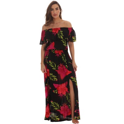 Riviera Sun Womens Floral Printed High Slit Off-Shoulder Rayon Crepe Printed Maxi Dress for Women