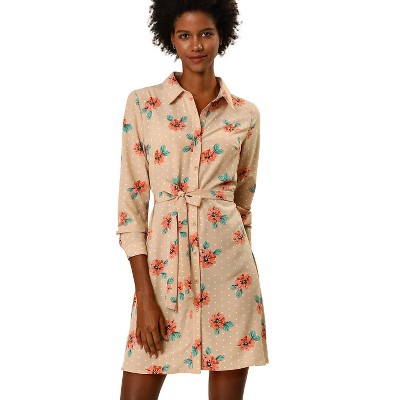 Allegra K Women's Boho Floral Elastic Waist Flowy Long Sleeves Midi Dress
