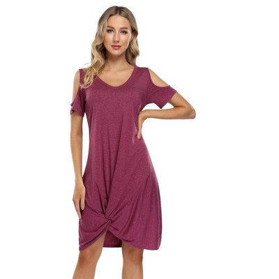 Off-Shoulder Short Sleeve V-Neck Front Twist T-Shirt Dress