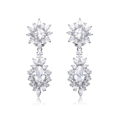 Guili Sterling Silver Rhodium Plated Clear Marquise with Pear and Round Cubic Zirconia Cluster Drop Earrings, an Exquisite and Dazzling Design