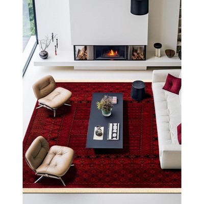 red flat weave rug