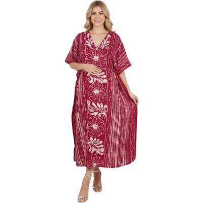 LA LEELA Womens Summer Batik Caftan Loungewear House Dashiki Dress Kaftan Nightshirts for Women Sleepwear Plus size 2X-3X Red, Floral