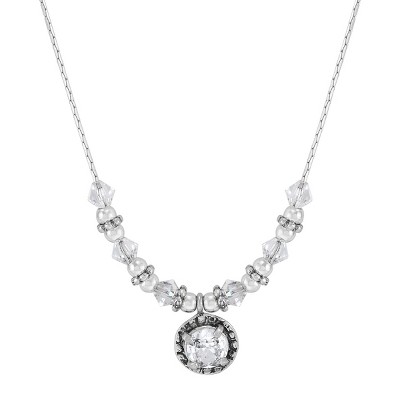 Silpada 'Snow Queen' Sterling Silver White Cubic Zirconia and Crystal Pendant Necklace, 16" + 2"