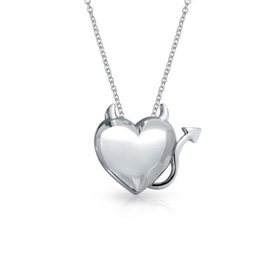 Bling Jewelry Whimsical Devil Horns Heart Shape Pendant Necklace .925 Sterling Silver