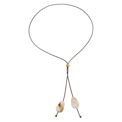 Unique Bargains Adjustable Versatile Long Pendant Bohemian Necklace Long Sweater Necklace 12.2" to 15.7" White Brown 1Pc
